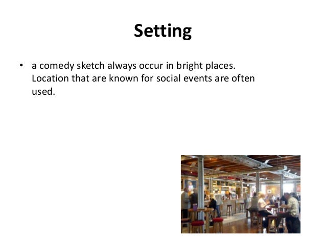 - 2. Setting • a comedy sketch always occur in bright places. Location that are known for social events are often used.