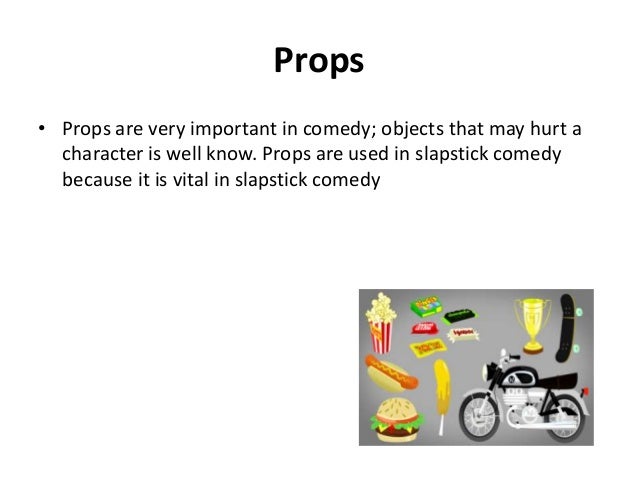 - 6. Props • Props are very important in comedy; objects that may hurt a character is well know. Props are used in slapstick comedy because it is vital in slapstick comedy